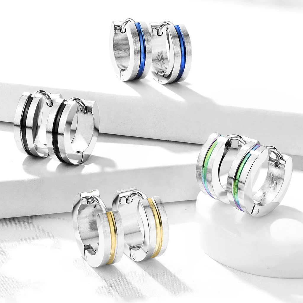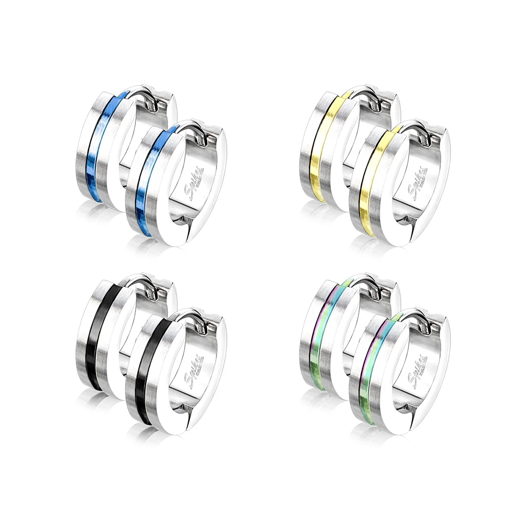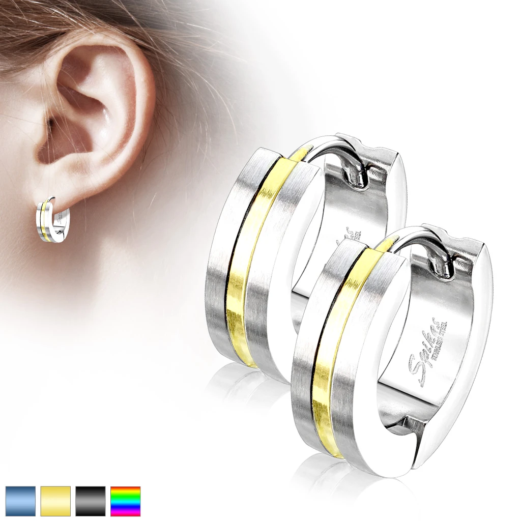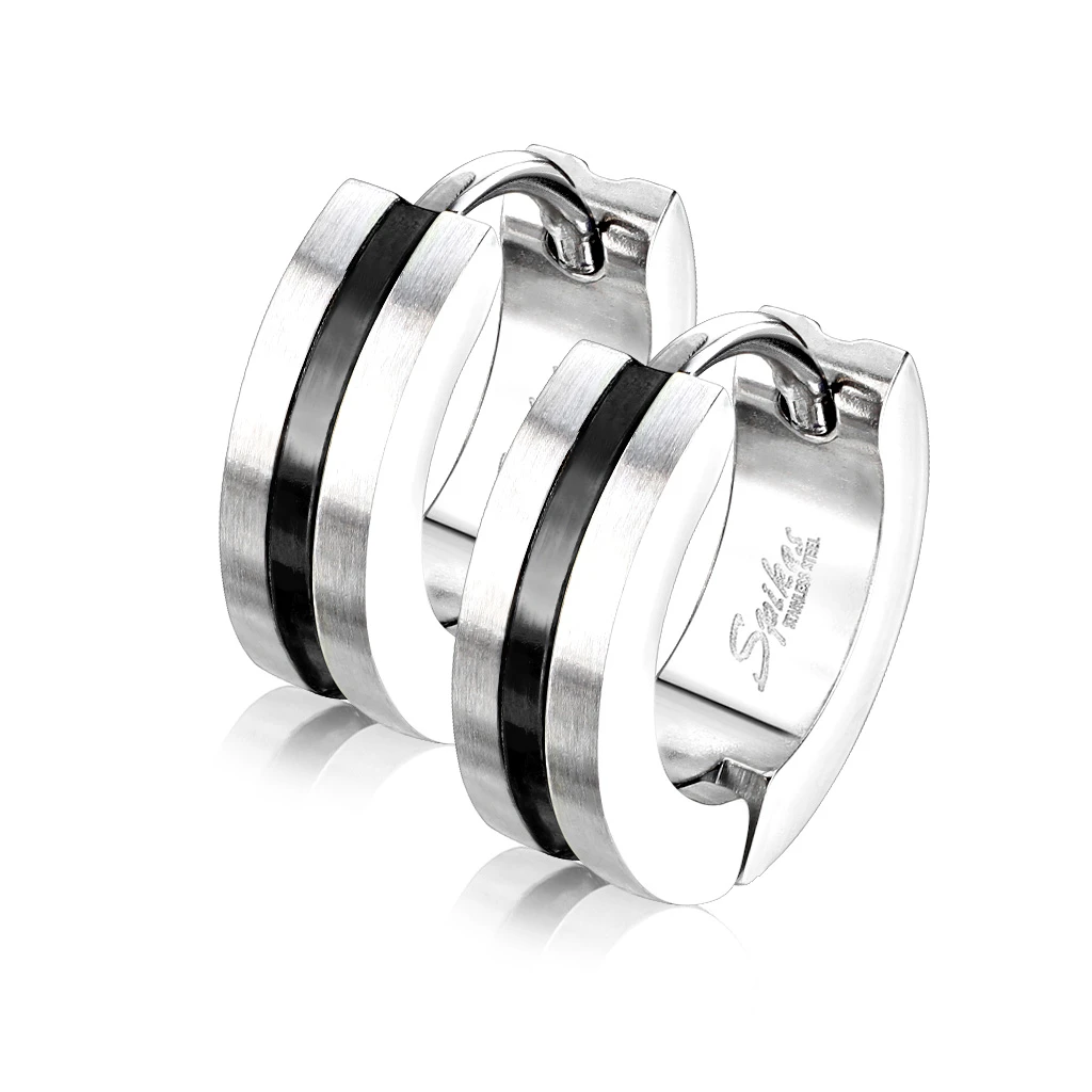 Náušnice kroužky vyrobené z chirurgické oceli. Náušnice mají vnější průměr 13mm, šíře náušnic 4mm.