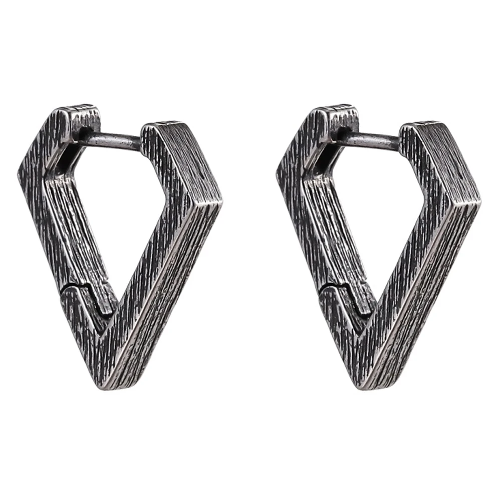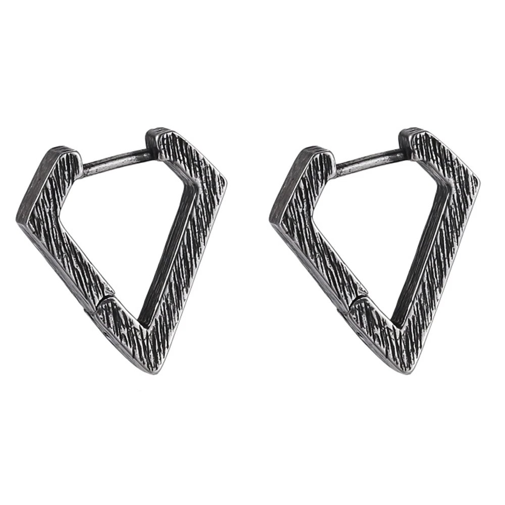 Netradiční náušnice ve tvaru trojúhelníku z chirurgické oceli. Povrch náušnic je pokrytý plastickým vzorem. Rozměry náušnic 18x16x3mm. Náušnicové zapínání je kloubové.