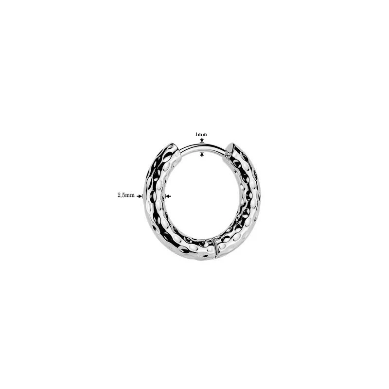 Ocelové náušnice s povrchem, který vypadá jako potlučený kladivem. Ocelové náušnice se stále těší značné oblibě zejména pro vlastnosti, které chirurgická ocel má. Šperky z chirurgické oceli neoxidují, nemění barvu, nevyvolávají alergické reakce a jsou odolné proti poškození.
