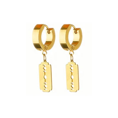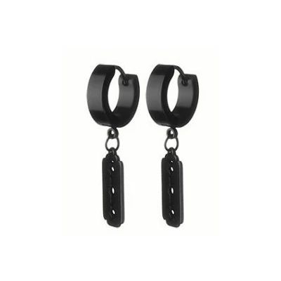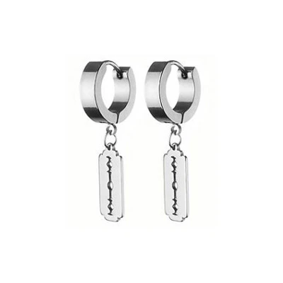 Ocelové náušnice kroužky. Povrch náušnic je leštěný. Kroužek je široký 4,0mm, vnější průměr kroužku 13mm. Celková délka náušnice s ozdobou žiletky 33mm. Uvedená cena platí za pár náušnic.