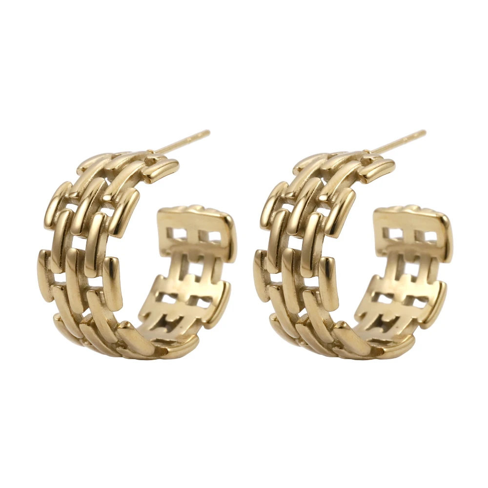 Řetízkové kruhové náušnice z chirurgické oceli. Pozlacený povrch náušnic je leštěný. Vnější průměr náušnic 23mm, šířka 11mm. Náušnicové zapínání je na puzetky. Uvedená cena platí za pár náušnic.