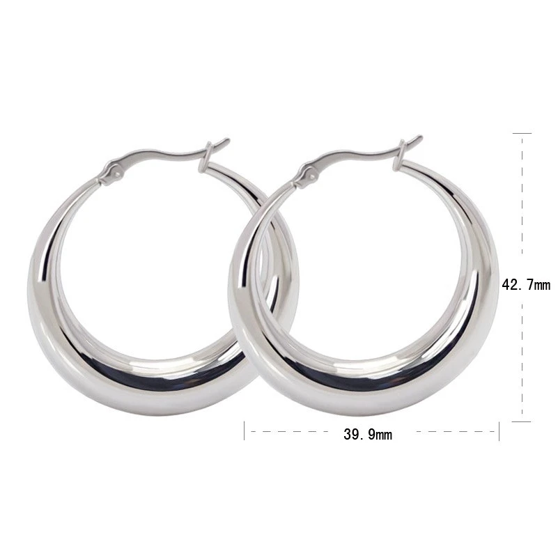 Ocelové kruhové náušnice s leštěným povrchem. Náušnice mají zapínání na francouzský zámek. Váha každé náušnice 6,0g.
