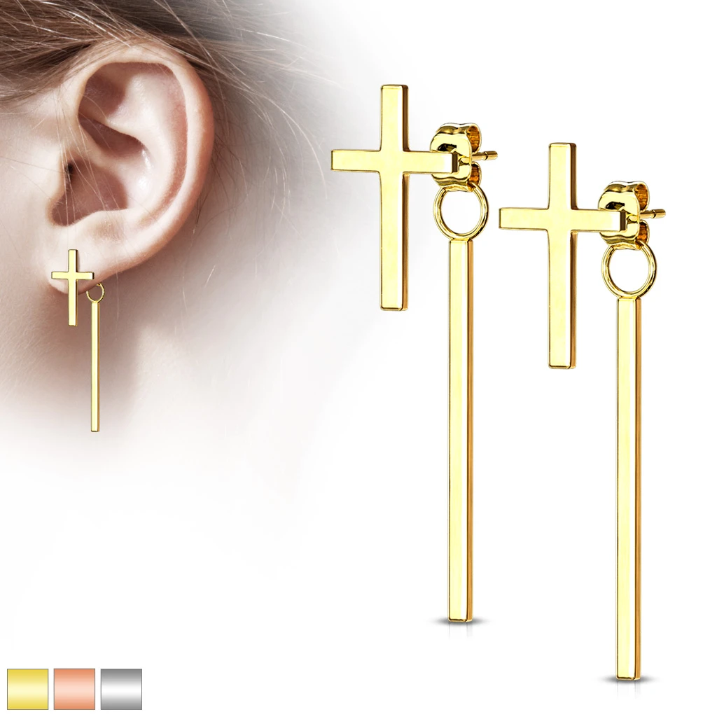 Náušnice z chirurgické oceli s křížkem 3623