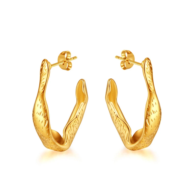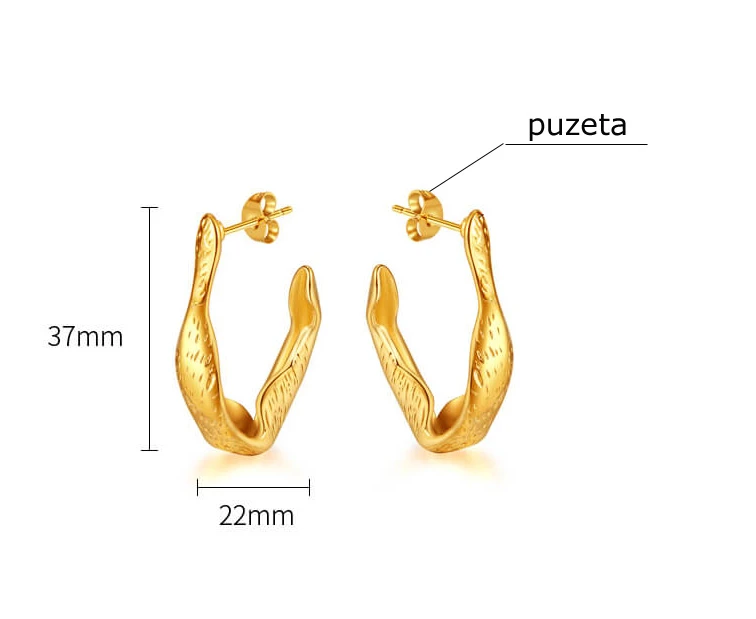 Náušnice z chirurgické oceli s povrchem pozlaceným technologií IP. Rozměr náušnic 375x22mm. Šířka náušnic 7mm. Náušnicové zapínání je na puzetky.