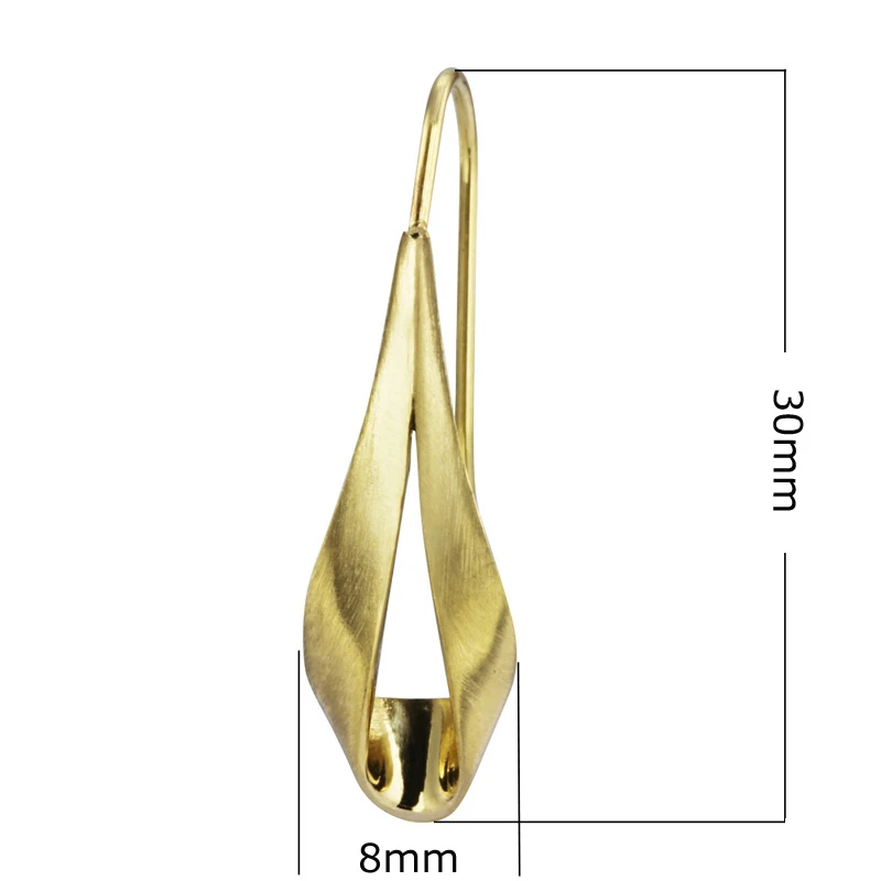 Visací náušnice vyrobené z chirurgické oceli. Náušnice mají broušený matný povrch pozlacený žlutým zlatem technologií PVD. Náušnice jsou dlouhé 30mm, šířka náušnic 8mm. Náušnicové zapínání je na háček.