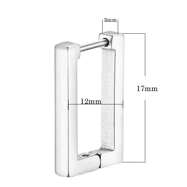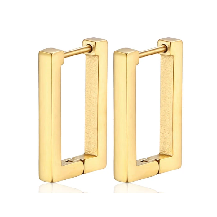 Ocelové náušnice ve tvaru obdélníku. Povrch náušnic je leštěný. Šířka náušnic 3mm. Rozměry náušnic jsou zobrazené na podpůrné fotografii. Uvedená cena platí za pár náušnic.