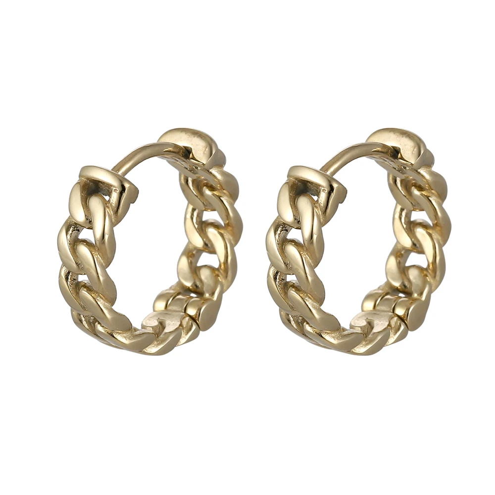 Ocelové náušnice kroužky. Povrch náušnic je pozlacený technologií IP. Náušnice jsou široké 4mm, vnitřní průměr náušnic 12mm, vnější průměr 15mm. Náušnicové zapínání na kloub. Uvedená cena platí za pár.