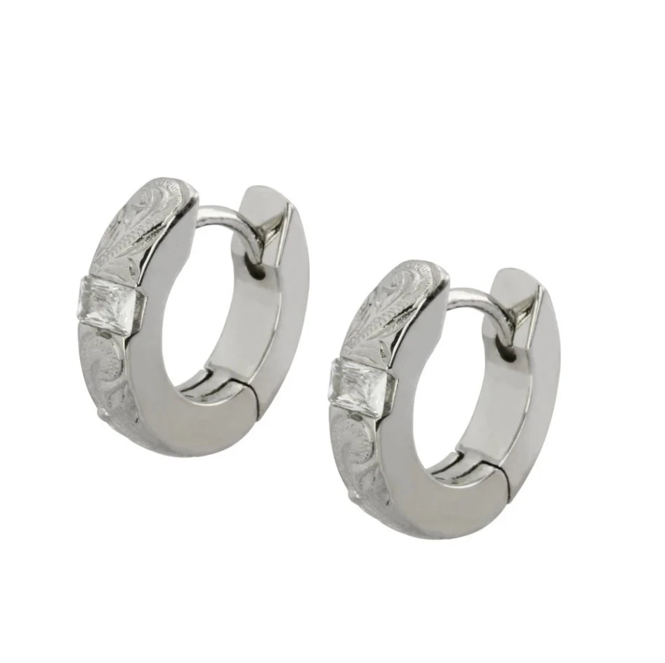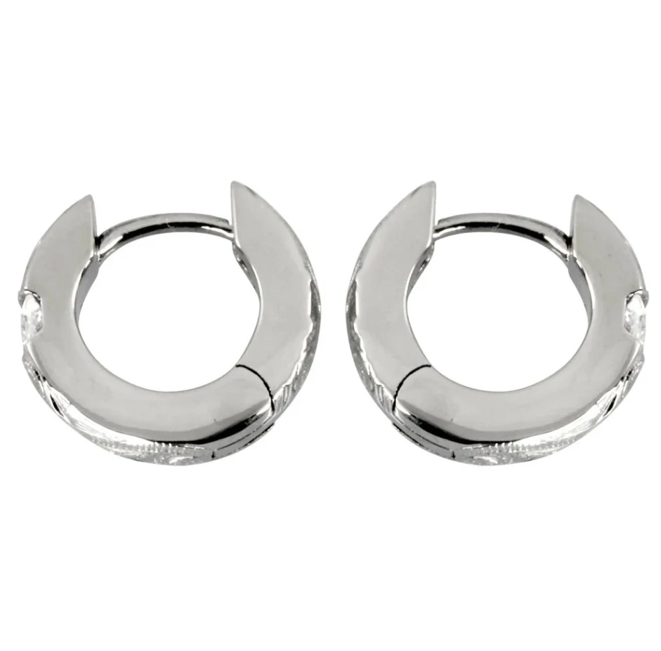 Náušnice kroužky se zirkonem. Náušnice jsou vyrobené z chirurgické oceli a osazené prvotřídními zirkony. Náušnice mají leštěný povrch zdobený gravírovaným vzorem. Zapínání náušnice je kloubové. Vnější průměr náušnic 13mm, vnitřní průměr 8mm, šířka náušnic 3mm. Cena je uvedena za pár.