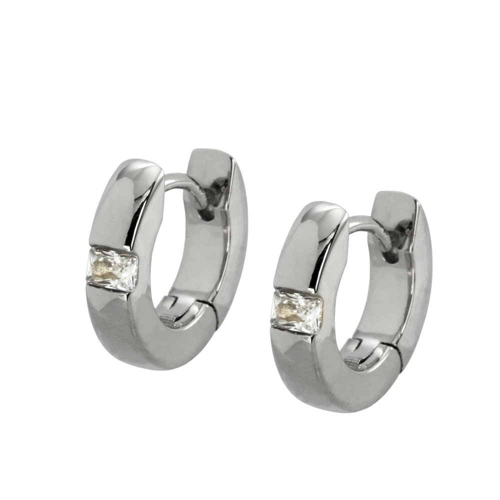 Náušnice kroužky se zirkonem. Náušnice jsou vyrobené z chirurgické oceli a osazené prvotřídními zirkony. Náušnice mají leštěný povrch. Zapínání náušnice je kloubové. Vnější průměr náušnic 13mm, vnitřní průměr 8mm, šířka náušnic 3mm. Cena je uvedena za pár.