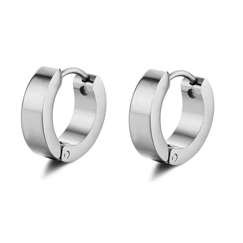 Náušnice kroužky z chirurgické oceli s leštěným povrchem. Vnější průměr náušnic 13mm. Šířka náušnic 4mm. Uvedená cena platí za pár.
