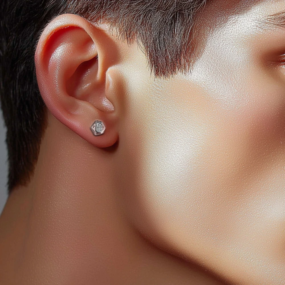 Náušnice pecky z chirurgické oceli ve tvaru pětihranu. Použitá chirurgická ocel garantuje dlouhodobý bezchybný vzhled náušnic. Rozměr náušnic 8x8x4mm. Náušnicové zapínání je na puzetky. Uvedená cena platí za pár.