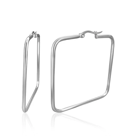 Náušnice z chirurgické oceli 316L. Náušnice s leštěným povrchem. Náušnice mají tvar čtverce. Náušnice jsou široké 2mm. Rozměr náušnic: 35*35mm. Uvedená cena za 1 pár.