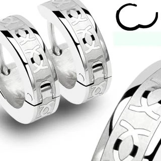 Náušnice z chirurgické oceli 316L. Náušnice jsou kombinace matné a leštěné oceli. Vnitřní průměr náušnice 9mm, šířka náušnice 4mm. Uvedená cena za 1 pár.