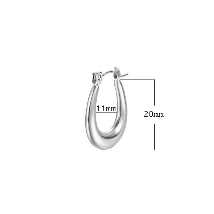 Visací oválné náušnice z chirurgické oceli. Povrch náušnic je leštěný. Náušnicové zapínání je na francouzský zámek. Velikost náušnic 20mm najdete zobrazenou na podpůrné fotografii.
