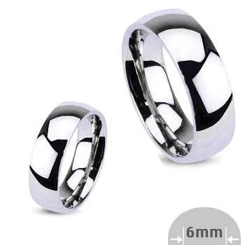 Prsten z chirurgické oceli 316L. Prsten má povrch vyleštěný do zrcadlového lesku. Krásný jednoduchý prsten. Prsten lze použít jako snubní. Prsten je široký 6mm.