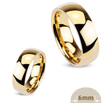 Prsten z chirurgické oceli 316L. Prsten má pozlacený povrch vyleštěný do zrcadlového lesku. Krásný jednoduchý prsten. Prsten lze použít jako snubní. Prsten je široký 6mm.
