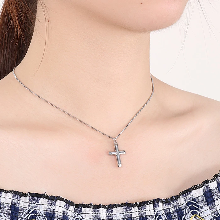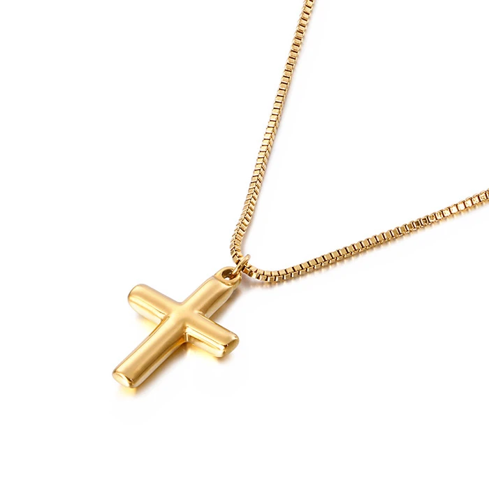 Přívěšek kříže a řetízek tvořící jemný a elegantní náhrdelník.
