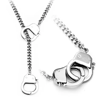 Náhrdelník z chirurgické oceli pouta. Povrch náhrdelníku je leštěný, obě pouta mají funkční závěry a je možné zapnout jedno pouto do druhého, nebo řetízek poutem pouze provléct. Řetízková část náhrdelníku je široká 8 mm, délka náhrdelníku 55 cm. Délku náhrdelníku lze na přání zdarma zkrátit.
