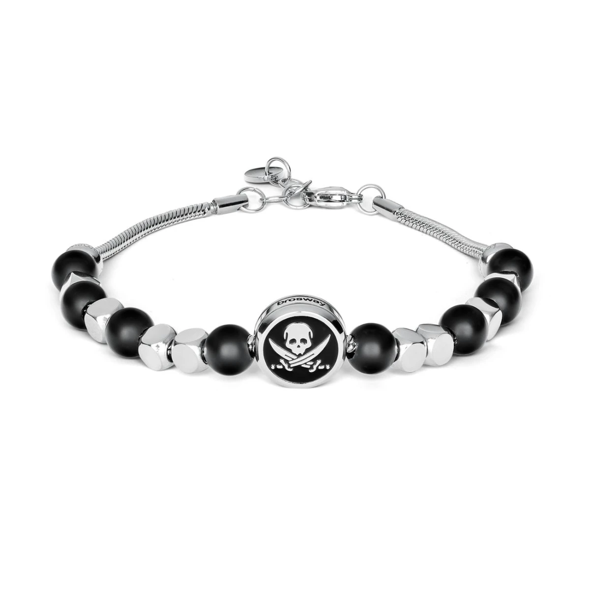 Pánský ocelový náramek Brosway. Náramek spojuje chladnou ocel s korálky z onyxu. Povrch ocelových částí náramku je leštěný. Náramek má zapínání na karabinu. Délka náramku 22cm.