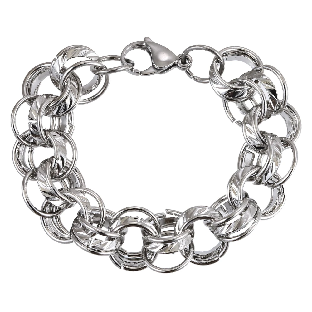 Dámský náramek z chirurgické oceli s leštěným povrchem. Očka náramku mají průměr 14mm. Elegantní náramek, který díky kvalitní chirurgické oceli vydrží dlouhou dobu. Náramkové zapínání je karabinové. Délka náramku 21cm. Na přání lze délku náramku zdarma zkrátit.