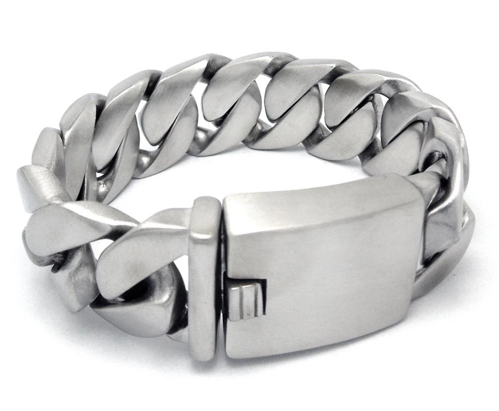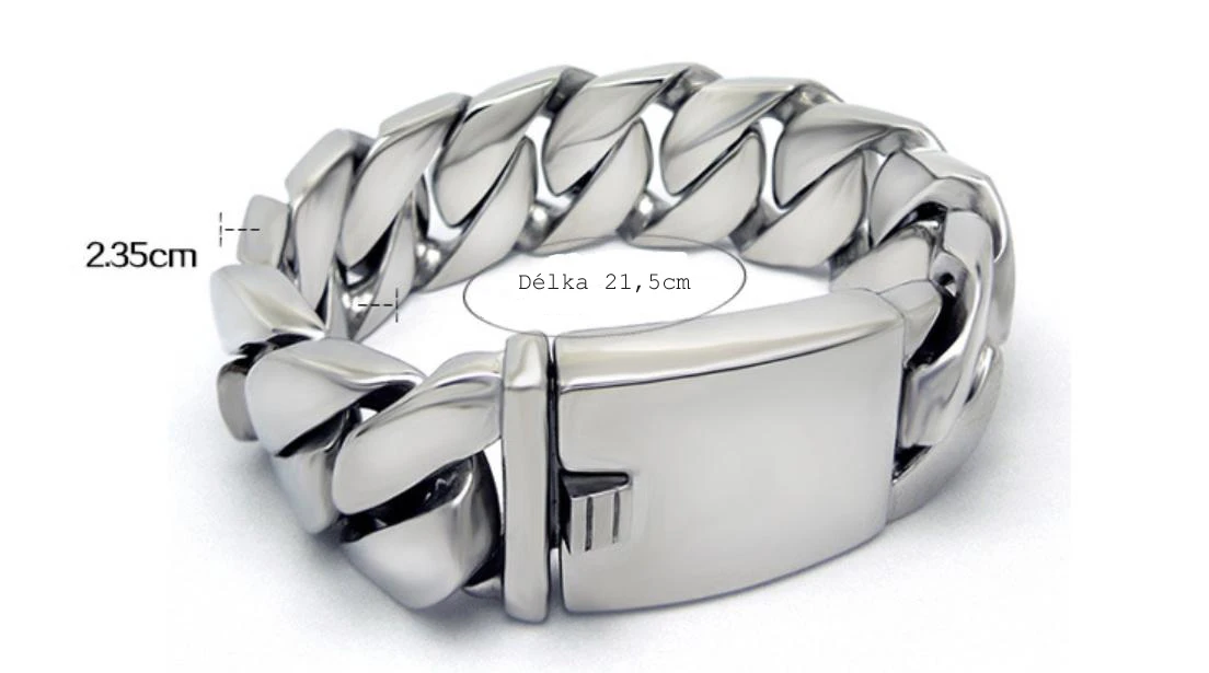 Pánský masivní náramek z chirurgické oceli s leštěným povrchem. Náramek se zapíná pomocí masivního klipu. Šířka náramku 2,35 cm. Délka náramku 21,5 cm.
