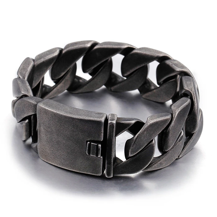 Náramek z chirurgické oceli pro muže. Povrch náramku má barvu pistolové šedi. Zapínání náramku je na masivní klip. Náramek je široký 25mm, délka náramku 21cm.