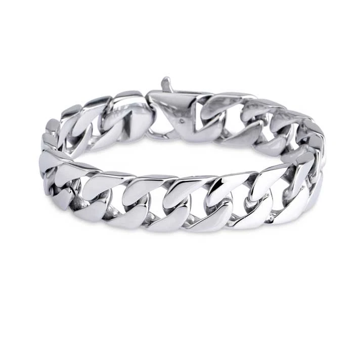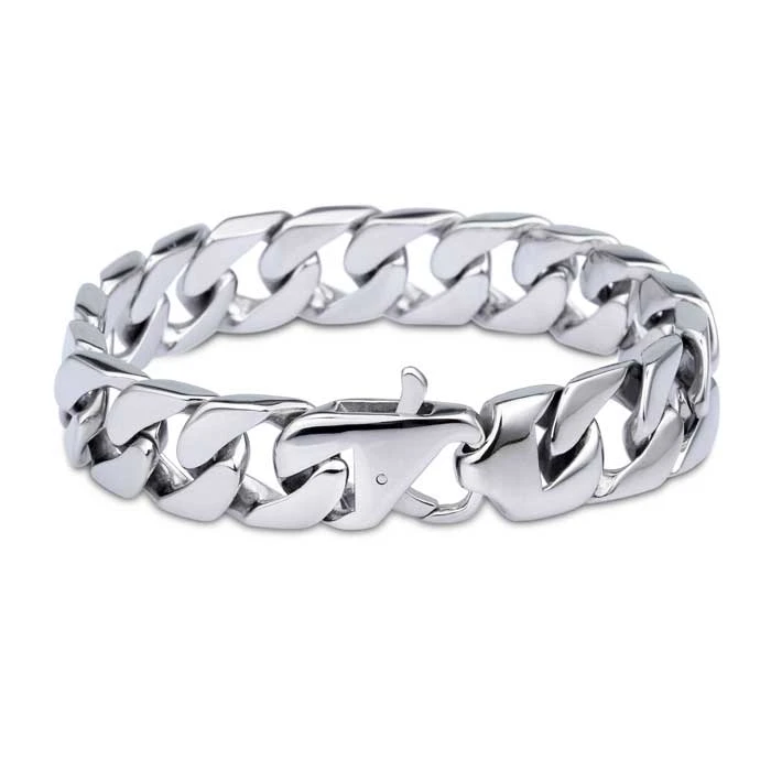 Náramek na paži z chirurgické oceli pro muže. Povrch náramku je leštěný. Náramek má karabinové zapínání. Šířka náramku 15mm.