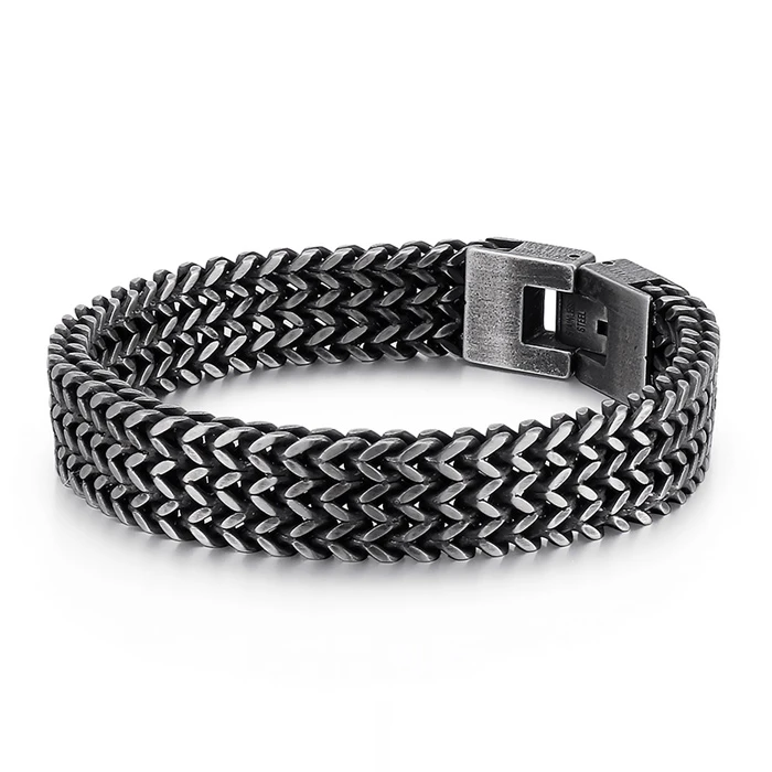Náramek z chirurgické oceli pro muže. Povrch náramku má barvu pistolové šedi. Náramkové zapínání je na klip. Třířadý pánský náramek široký 13mm, délka náramku 20,5cm.