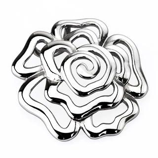 Přívěsek z chirurgické oceli 316L. Přívěsek je z oceli odlitý. Povrch přívěsku je leštěný. Přívěsek má tvar růžového květu. Průměr přívěsku: 36mm.