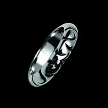 Prsten z chirurgické oceli 316L. Prsten má leštěný povrch zdobený černýmy zářezy. Prsten je široký 5mm. Hezký pánský ocelový prsten.