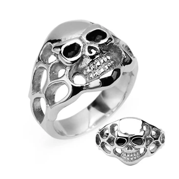 Prsten z chirurgické oceli 316L. Prsten s motivem lebky. Prsten má leštěný povrch. Prsten je v nejširším místě široký 17mm.