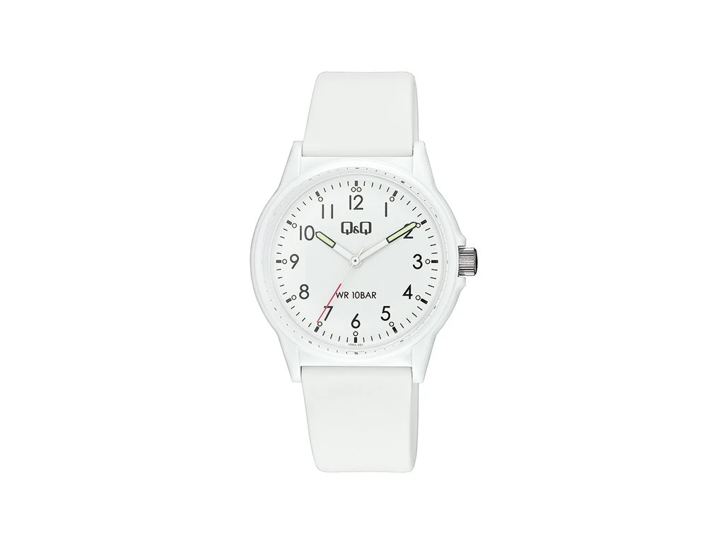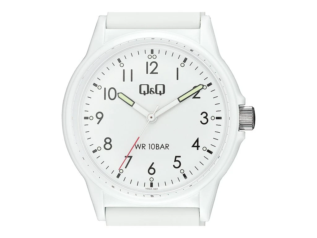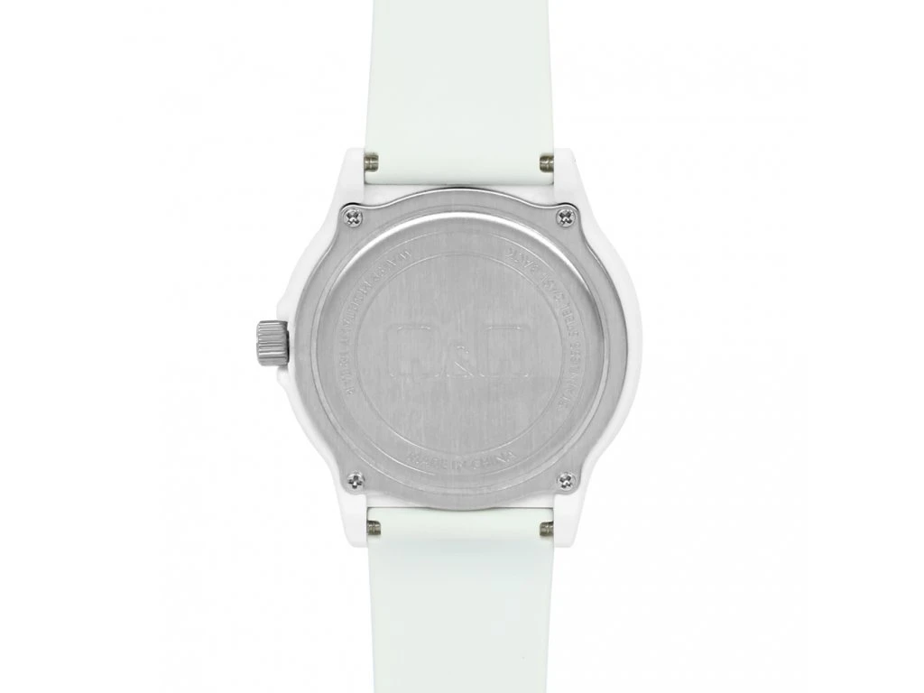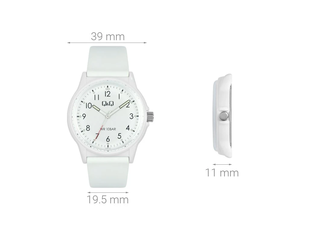Hodinky pro muže. Pouzdro i řemínek jsou z plastu. Průměr pouzdra hodinek 39mm, výška pouzdra 11mm. Bílý ciferník s černým číselníkem má průměr 34mm. Hodinky disponují hodinovou, minutovou a vteřinovou ručičkou. Plastový řemínek se zapínáním na jednoduchou sponu je široký 18mm. Hodinky jsou vodotěsné na úrovni 10ATM. Provoz hodinek zajišťuje spolehlivý bateriový strojek. Hodinky jsou dodávané včetně krabičky.