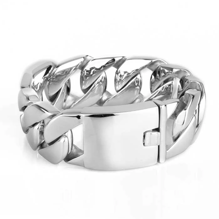 Ocelový náramek na ruku pro muže s leštěným povrchem. Šířka náramku 20mm. Zapínání náramku je na masivní klip.