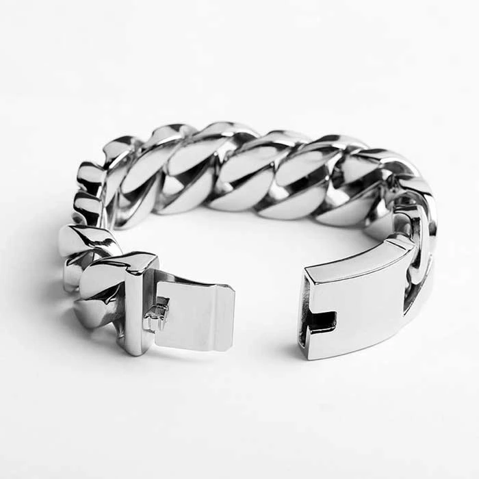 Náramek z chirurgické oceli pro opravdové chlapi. Masivní náramek náramek na ruku s leštěným povrchem. Zapínání náramku je na masivní klip. Pánský ocelový náramek široký 22mm. Délka náramku 21cm, hmotnost náramku 175g.