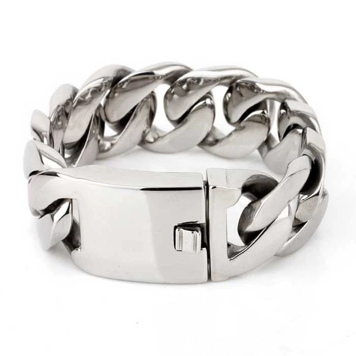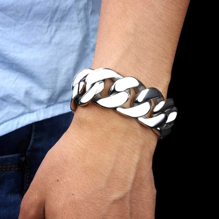 Náramek z chirurgické oceli pro opravdové chlapi. Masivní náramek náramek na ruku s leštěným povrchem. Zapínání náramku je na masivní klip. Pánský ocelový náramek široký 31mm. Délka náramku 21,5cm, hmotnost náramku 295g.