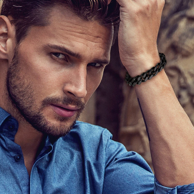 Pánský ocelový náramek na ruku. Náramky z chirurgické oceli i ostatní šperky z tohoto materiálu se stále těší oblibě zejména díky vlastnostem, které chirurgická ocel má. Mezi tyto vlastnosti patří především nevyvolávání alergických reakcí, odolnost proti poškození, barevná stálost, šperky z chirurgické oceli neoxidují a jsou dostupné za zlomek ceny ve srovnání se šperky z drahých kovů.
