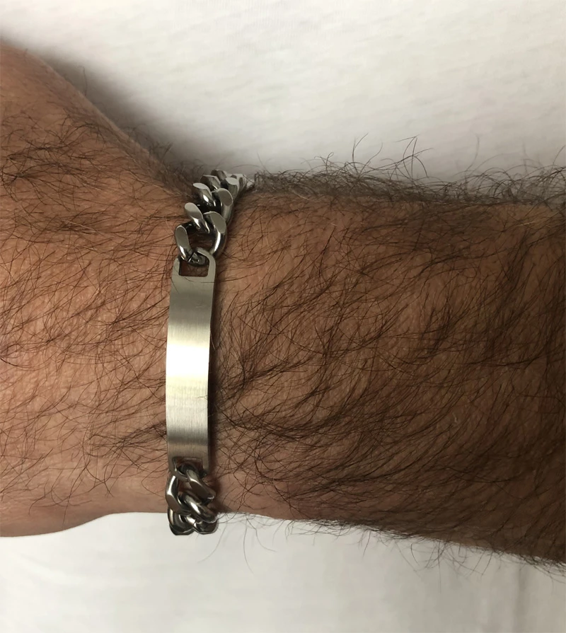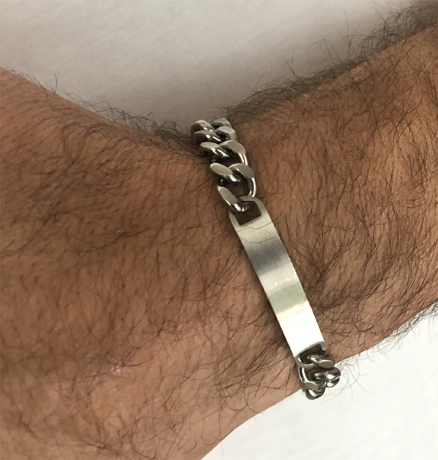 Náramek pro muže z chirurgické oceli. Povrch náramku je matný. Délka náramku 21cm, šířka 8mm. Rozměr destičky 44x8mm.