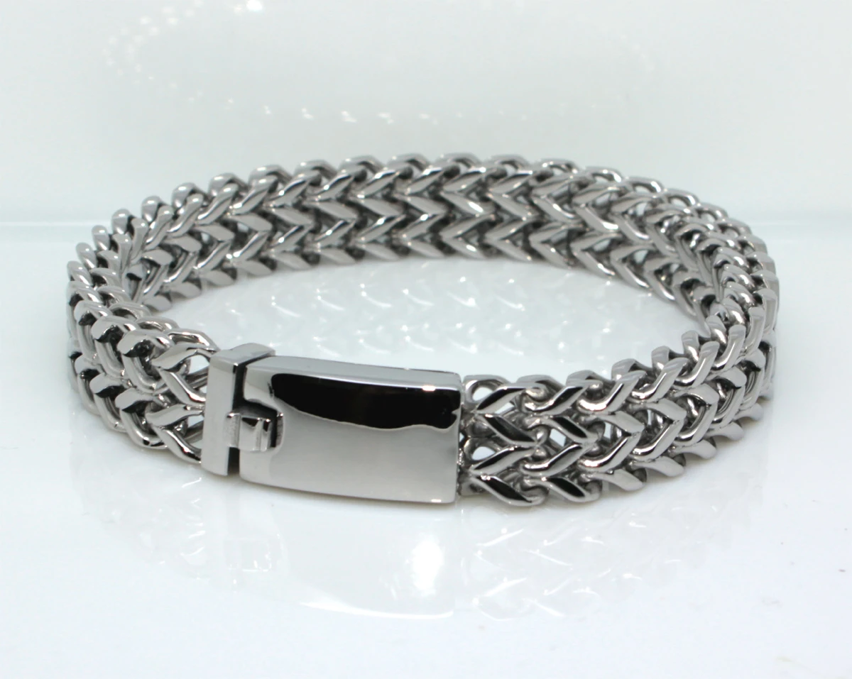 Ocelový náramek pro muže. Povrch náramku je leštěný. Náramek je široký 12mm, délka náramku 23cm. Náramkové zapínání je na klip.