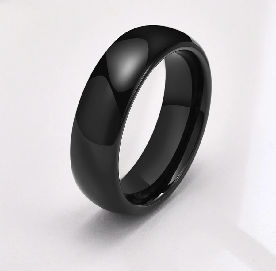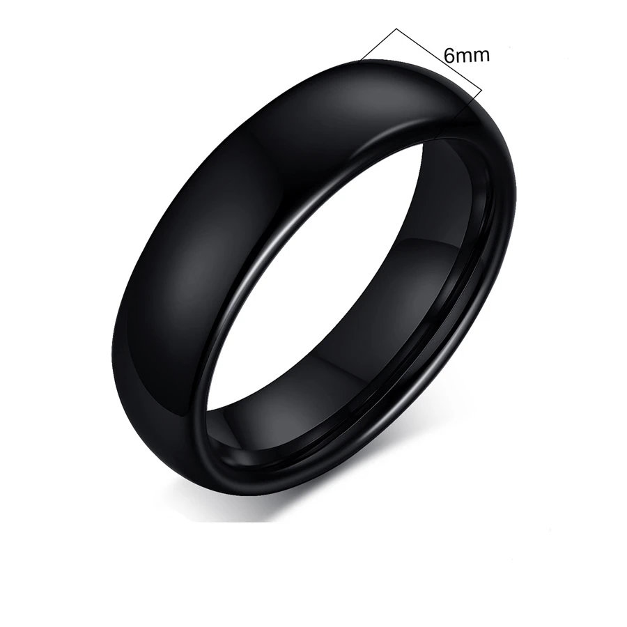 Pánský prsten z wolframu. Povrch prstenu je upravený černou lesklou PVD barvou. Prsten je široký 6mm.