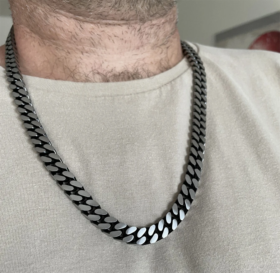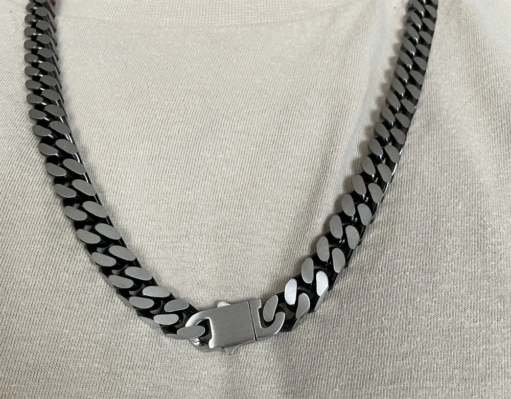 Řetízek z chirurgické oceli pro muže v netradiční barvě pistolové šedi.