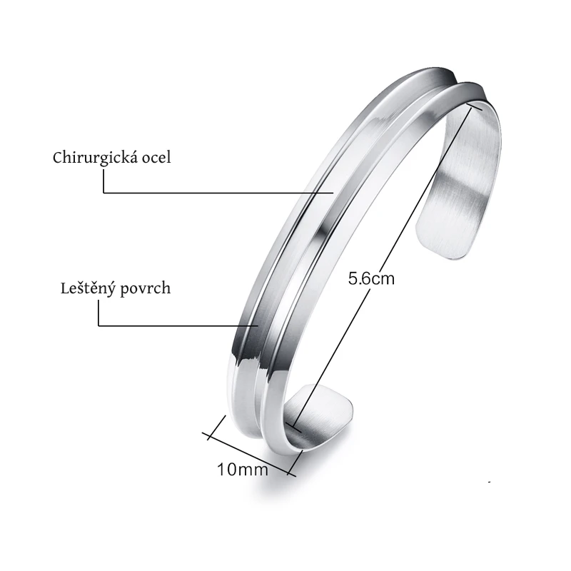 Náramek na paži z chirurgické oceli. Jako všechny šperky zhotovené z materiálu chirurgická ocel, je také tento náramek odolný proti poškození, nevyvolává alergické reakce, neoxiduje, chirurgická ocel nemění barvu. Díky těmto vlastnostem a přijatelné ceně se ocelové šperky těší stále značně vysoké popularitě ve stále se rozšiřujících řadách spokojených uživatelů.