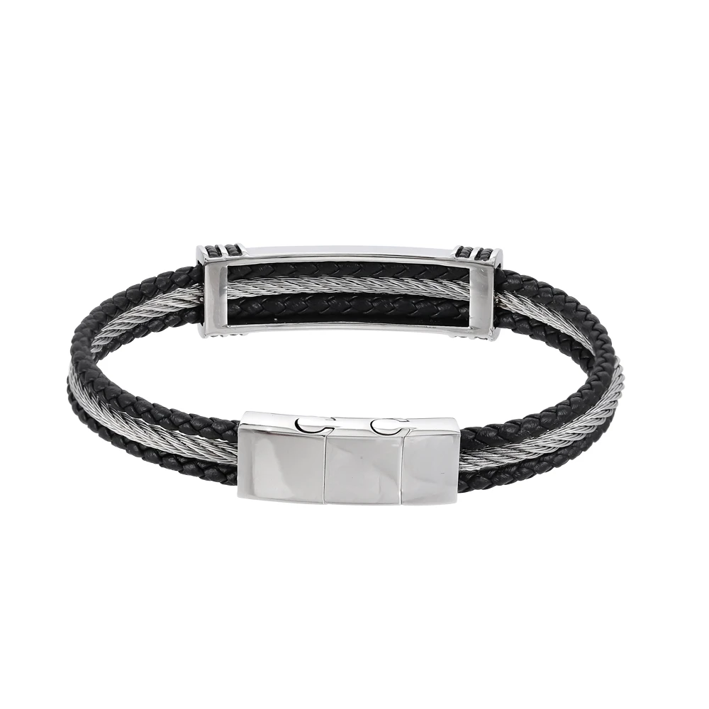 Pevný náramek z chirurgické oceli a kůže BSS978