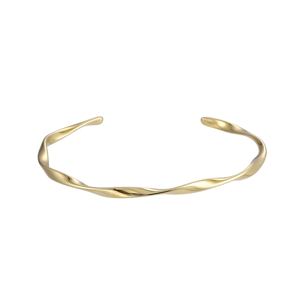Náramek bangle z chirurgické oceli s povrchem pozlaceným 14k žlutým zlatem. Vnitřní šíře náramku 60mm, šířka náramku 3mm. Rozměry najdete zobrazené na podpůrné fotografii.