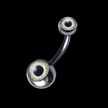 Piercing pupíku. Piercing je celý vyrobený z chirurgické oceli 316L. Piercing s „okem“. Průměr větší kuličky 8mm, průměr horní šroubovací kuličky 6mm. Dřík piercingu je dlouhý 10mm, průměr dříku 1,6mm.