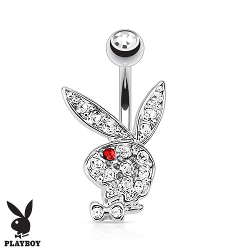 Piercing do pupíku se zajíčkem Playboy. Dřík a kulička jsou z chirurgické oceli 316l, ozdoba je z porhodiované bižuterie. Dřík dlouhý 10mm má průměr 1,6mm. Kulička se zirkonem má průměr 5mm. Zajíček má rozměr 17*12mm. Zajíček je vyráběný a používaný pod registrovanou licencí značky Playboy.