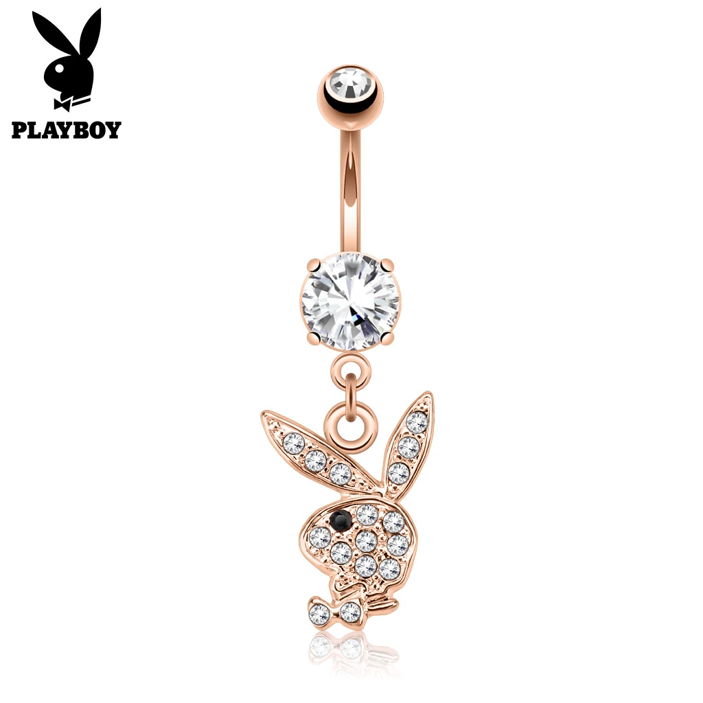 Piercing do břicha se zajíčkem Playboy. Piercing je vyráběný a prodávaný s vědomím i schválením držitele licence značky Playboy.