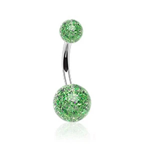 Piercing do pupíku. Piercing má dřík z chirurgické oceli 316L. Kuličky piercingu jsou z bioplastu. Dřík piercingu má průměr 1,6mm, délku 10mm. Průměr horní kuličky 5mm, průměr dolní kuličky 8mm.