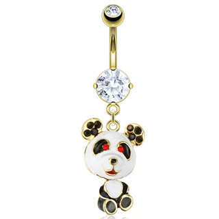 Piercing do pupíku. Dřík piercingu je vyrobený z pozlacené chirurgické oceli 316L. Ozdoba piercingu barvená a pozlacená bižuterie. Rozměry dříku: délka 10mm, průměr 1,6mm. Ozdoba piercingu má rozměr 22*15mm. Netradiční pozlacený piercing do pupíku.