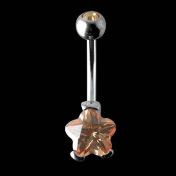 Piercing pupíku. Piercing je celý z chirurgické oceli 316L. Piercing je ozdobený oranžovým kamenem s průměrem 9mm. Dřík piercingu je dlouhý 10mm, průměr dříku 1,6mm, průměr kuličky 5mm. Krásný piercing do pupíku z chirurgické oceli.
