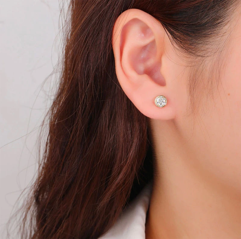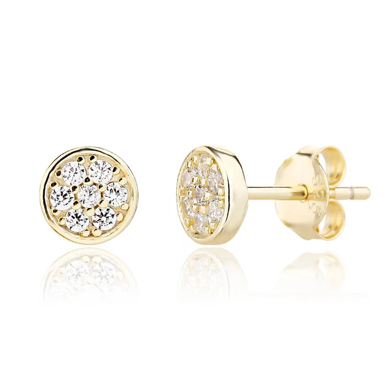 Náušnice se zirkony pecky vyrobené ze stříbra ryzosti 925/1000. Náušnice jsou pozlacené žlutým 14k zlatem. Průměr náušnic 6 mm. Náušnicové zapínání je na puzetky.